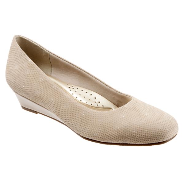 The Lauren is a dress wedge that is available in a variety of distinctive leather uppers and colors. A comfort cushioned footbed with stitchless embossed design and a slip-resistant light-weight flexible rubberized sole along with extra support from the wedge makes this ultimate all day footwear.